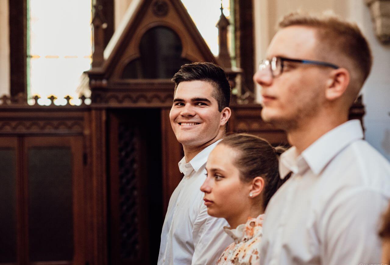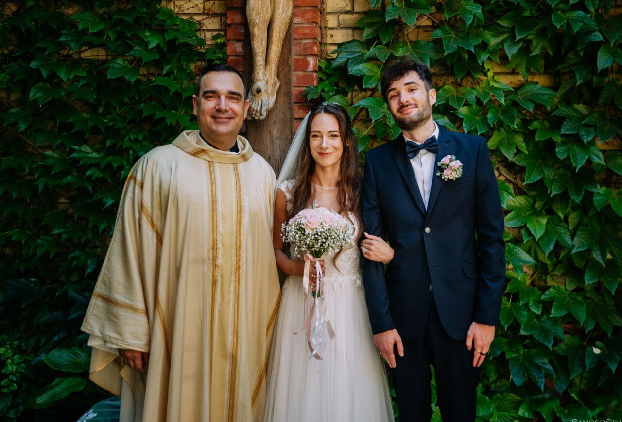 A házasságkötésüket a budapesti Jézus Szíve Jezsuita Templomban tartották, ahol egy meghitt és szép szertartás keretében mondták ki a boldogító igent. A templom lenyűgöző atmoszférája és a barátok, családtagok jelenléte felejthetetlenné tette ezt a pillanatot. A meghatottság és öröm mindenki arcán látszott, ahogy a pár megpecsételte szerelmét.
