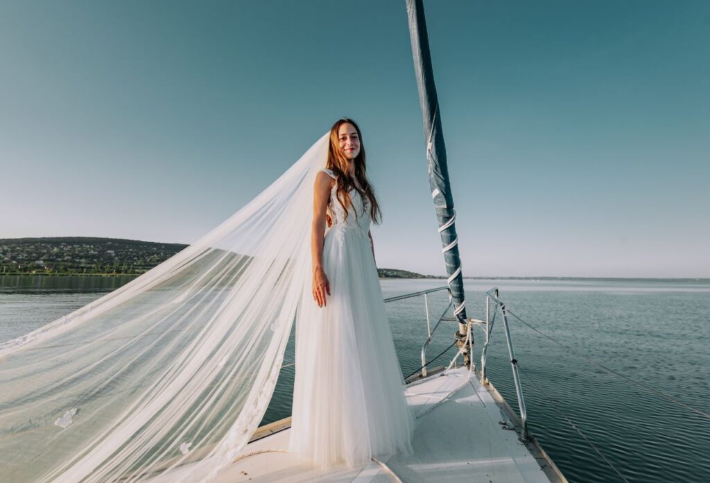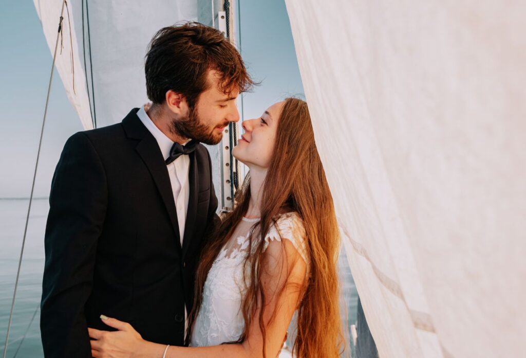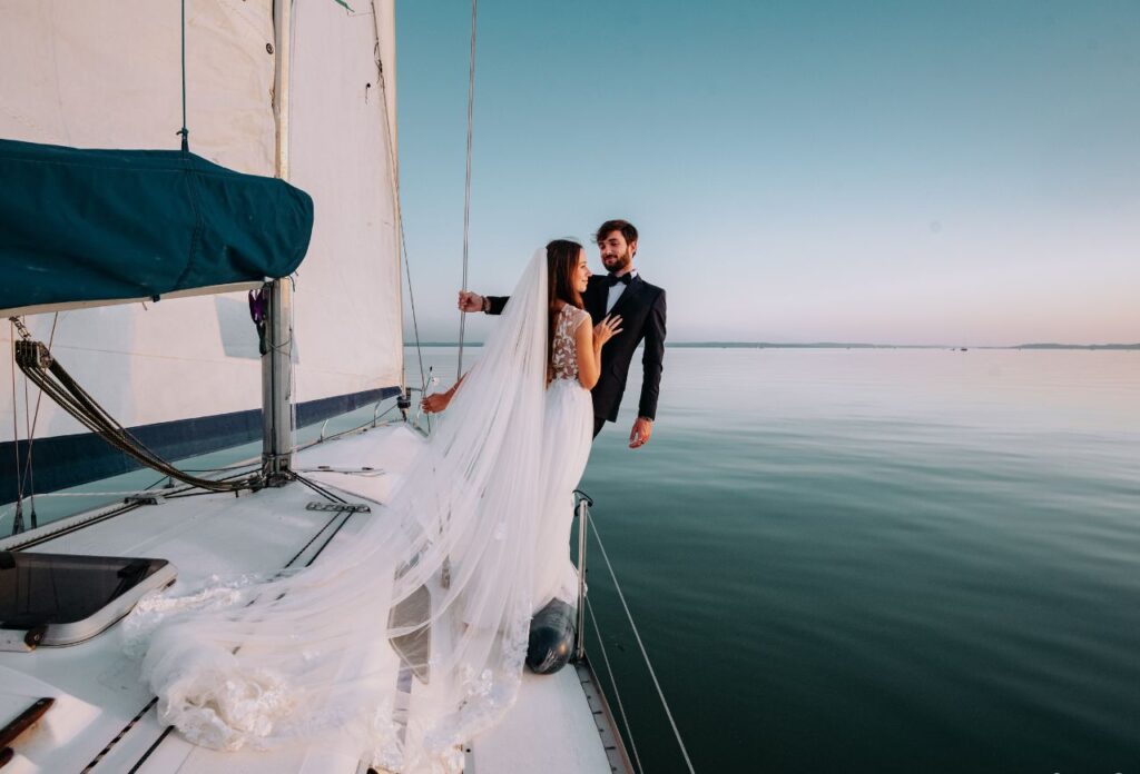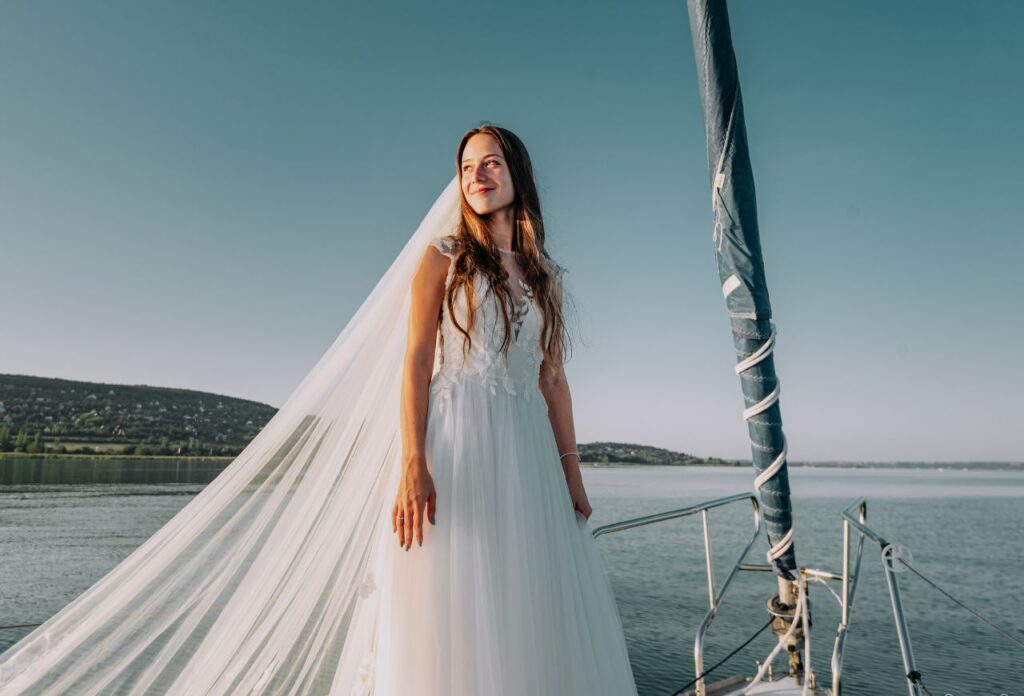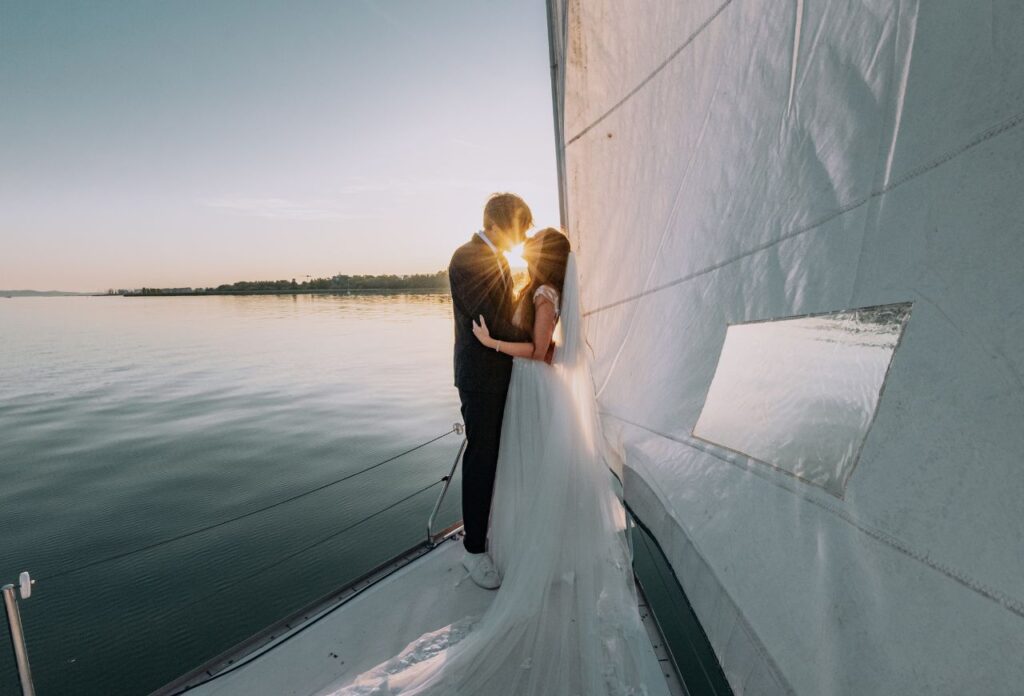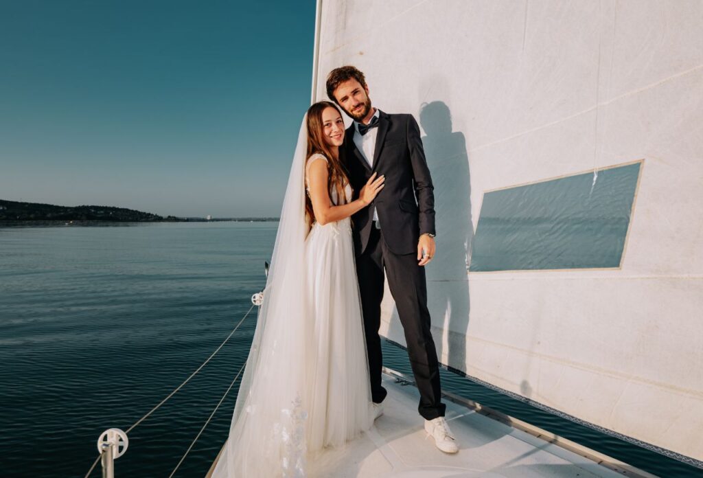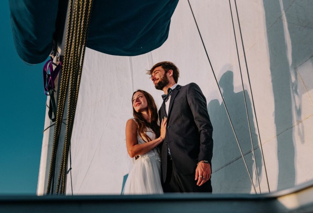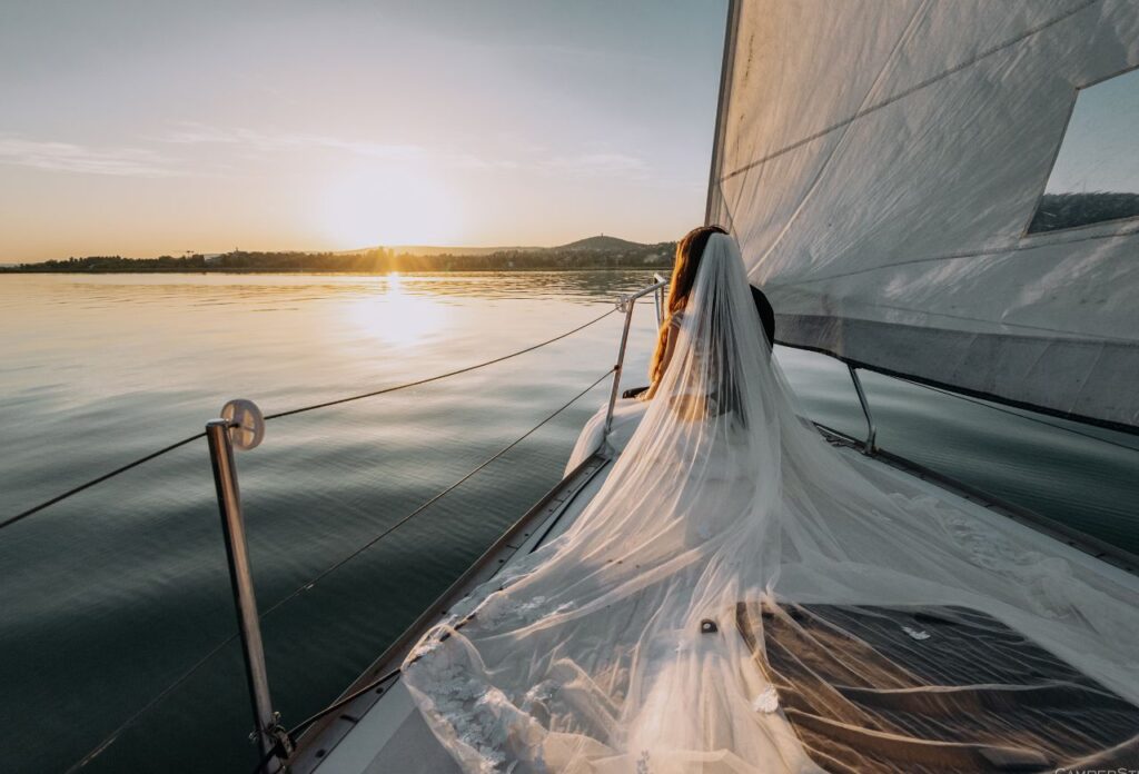 „Az esküvő másnapján egy vitorlás fotózást is kértünk, ami már önmagában is egy nagyon jó élmény volt. János vidámsága feldobta az egész fotózást. A képek elkészítése nagyjából 30- 40 percet vett igénybe. Ez többek közt azért is volt, mert naplemente tematikájú fotókat szerettünk volna, így limitált volt az időnk. Még ez a rövid idő is elég volt ahhoz, hogy végeredményként nagyjából 40-50 szerkesztett fotót kapjunk kézhez. Teljesen meg voltunk elégedve a fotózással. Volt egy apró nehézség is, mivel a naplemente tematika miatt az időnk limitált volt, de János nagyon jól kezelte ezt a helyzetet is. Előre felkészült, így már volt elkézpzelése arról, milyen fotókat is fog tudni készíteni, de nagyon jól improvizált is, a helyzethez alkalmazkodva irányított minket. Az egyik kedvencem például mikor János bebújt a vitorla mögé, és a nappal szembe fotózva a vitorlára vetült árnyékunkról készített egy képet. Imádtam azt is, hogy minden meglett örökítve, így viccesebb hangulatú képek is készültek. Ezeket a fotókat szintén megkaptunk, így egy pár „behind the scenes” képünk is lett a fotózásról.”