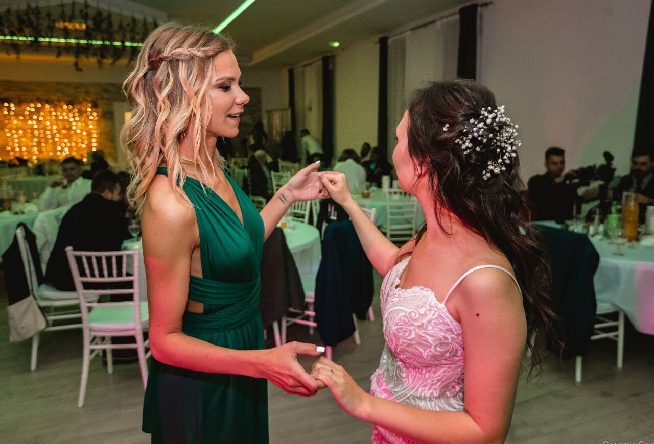 Az este a Diósjenői Play rendezvényházban folytatódott, ahol egy igazán fergeteges lagzi vette kezdetét. Az este folyamán számos esemény zajlott, mint a nyitótánc, a menyasszonytánc és természetesen az elmaradhatatlan esküvői torta felszelése, majd az éjféli menü érkezése. Ilyen nagy számú vendég esetén a hatalmas buli garantált, egyszer sem volt üres a tánctér!